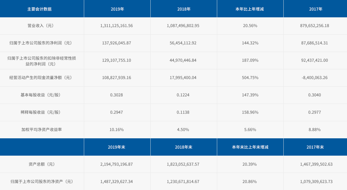 2019年度主要會(huì)計(jì)數(shù)據(jù)和財(cái)務(wù)指標(biāo)