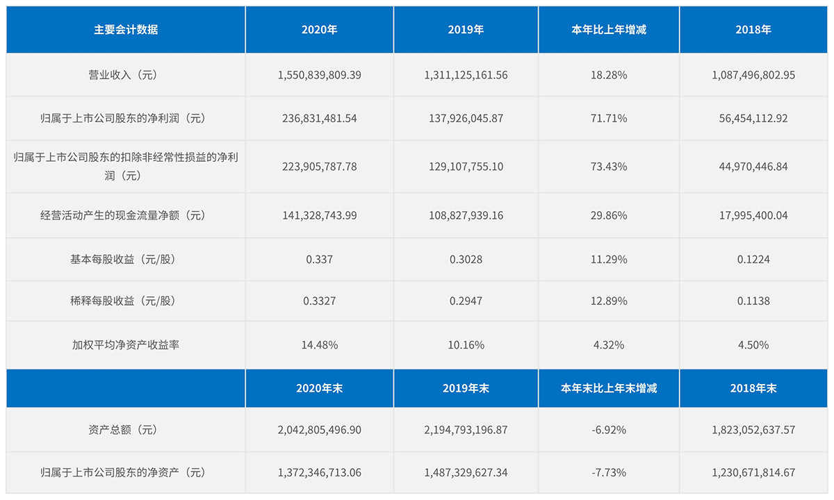 2020年度主要會(huì)計(jì)數(shù)據(jù)和財(cái)務(wù)指標(biāo)