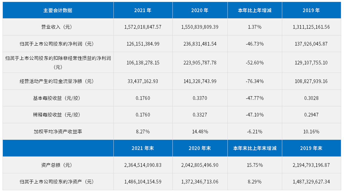2021年度主要會(huì)計(jì)數(shù)據(jù)和財(cái)務(wù)指標(biāo)