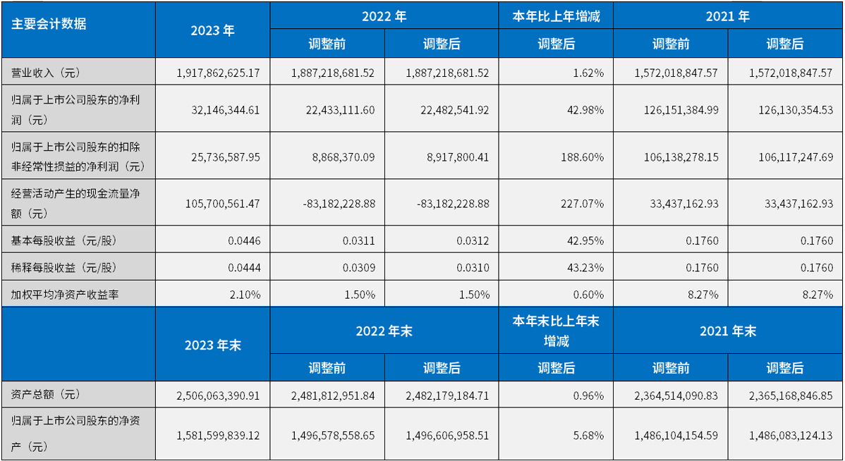 2023年度主要會(huì)計(jì)數(shù)據(jù)和財(cái)務(wù)指標(biāo)