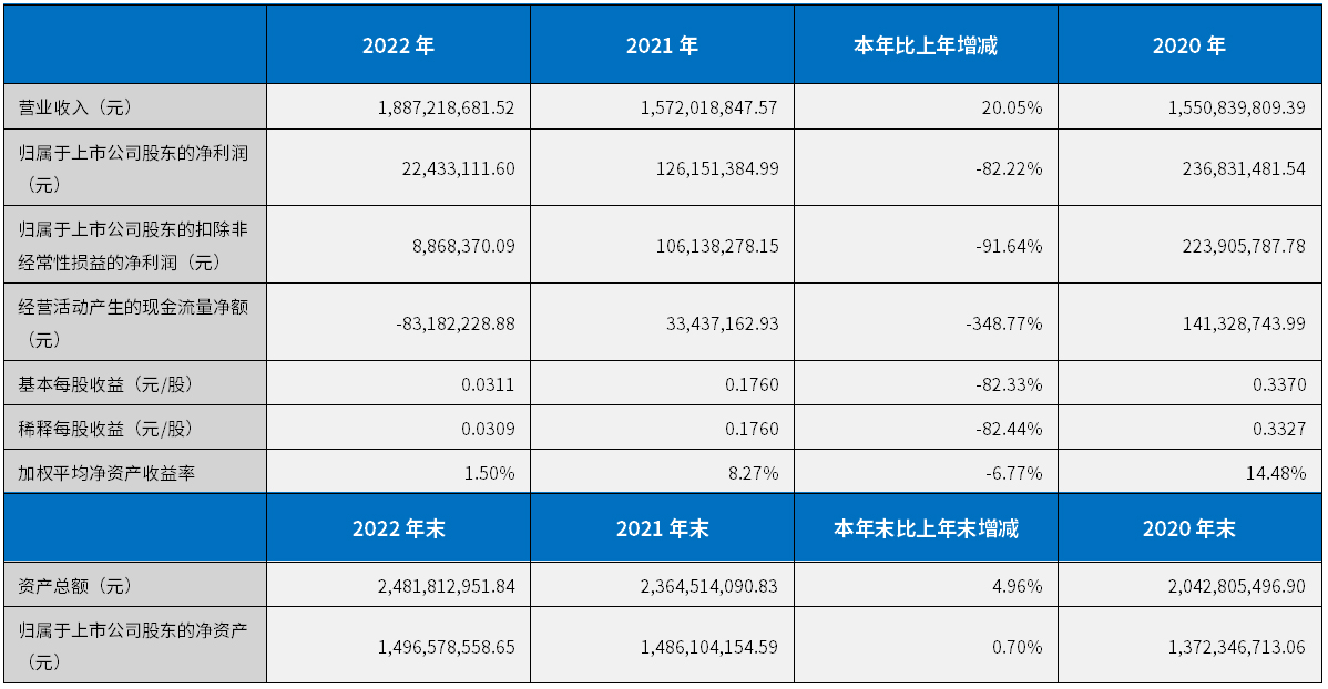 2022年度主要會(huì)計(jì)數(shù)據(jù)和財(cái)務(wù)指標(biāo)