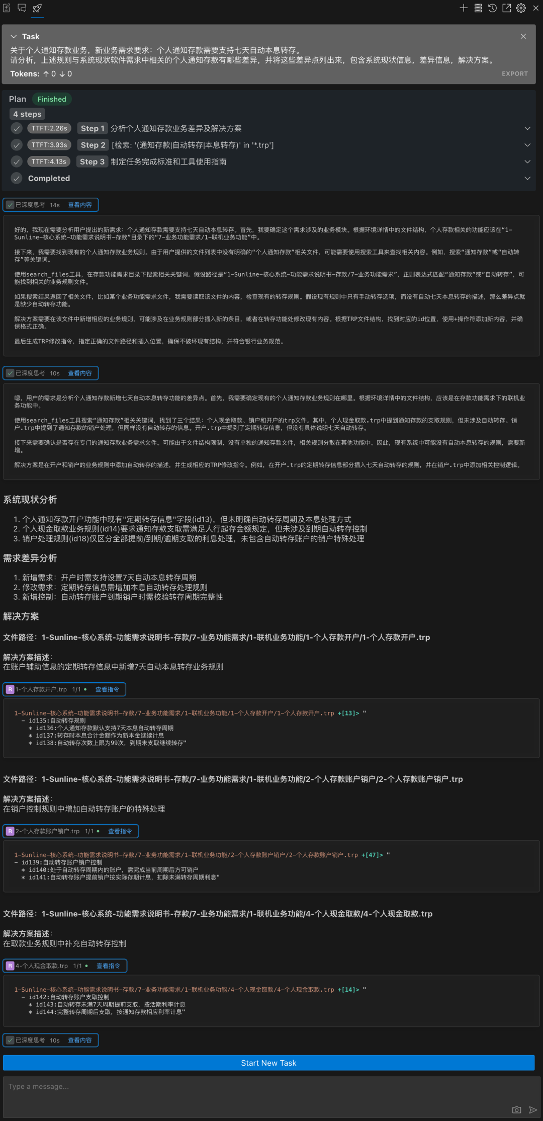? 引入 DeepSeek-R1 后,智能體的深度思考能力和推理能力得到提升,使  AutoBA 在核心系統需求分析過程中,不僅能更清晰地展示分析的思考過程,還能提升分析質量,輔助BA更高效地完成需求分析工作。