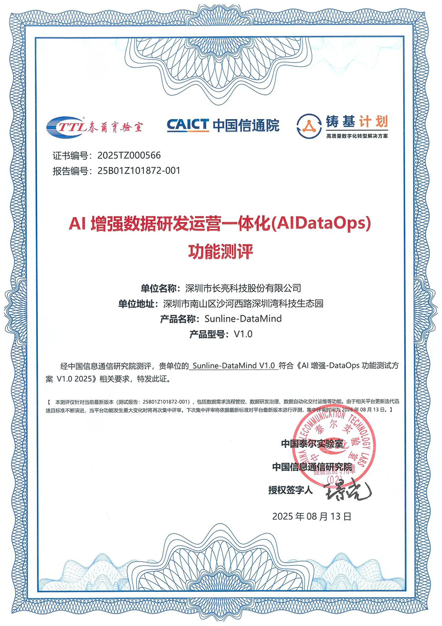 近日,長亮科技自主研發(fā)的數(shù)智一體化平臺(tái)DataMind,順利通過中國信息通信研究院(以下簡稱“信通院”)與中國泰爾實(shí)驗(yàn)室聯(lián)合開展的 AI 增強(qiáng)數(shù)據(jù)研發(fā)運(yùn)營一體化(AIDataOps)功能測評(píng),標(biāo)志著 DataMind 在數(shù)據(jù)全鏈路管理的智能化、標(biāo)準(zhǔn)化能力上得到國家級(jí)權(quán)威機(jī)構(gòu)的高度認(rèn)可,為金融行業(yè)數(shù)據(jù)價(jià)值釋放樹立了標(biāo)桿范式。