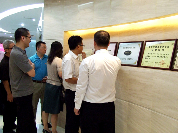 7月15日上午,深圳市南山區(qū)政府常委、副區(qū)長羅敏、南山區(qū)貿(mào)易工業(yè)局局長周輝、副局長練聰一行蒞臨長亮公司參觀考察,長亮董事長王長春、副總裁鄭康、財(cái)務(wù)總監(jiān)徐亞麗等公司領(lǐng)導(dǎo)進(jìn)行了熱情的接待。