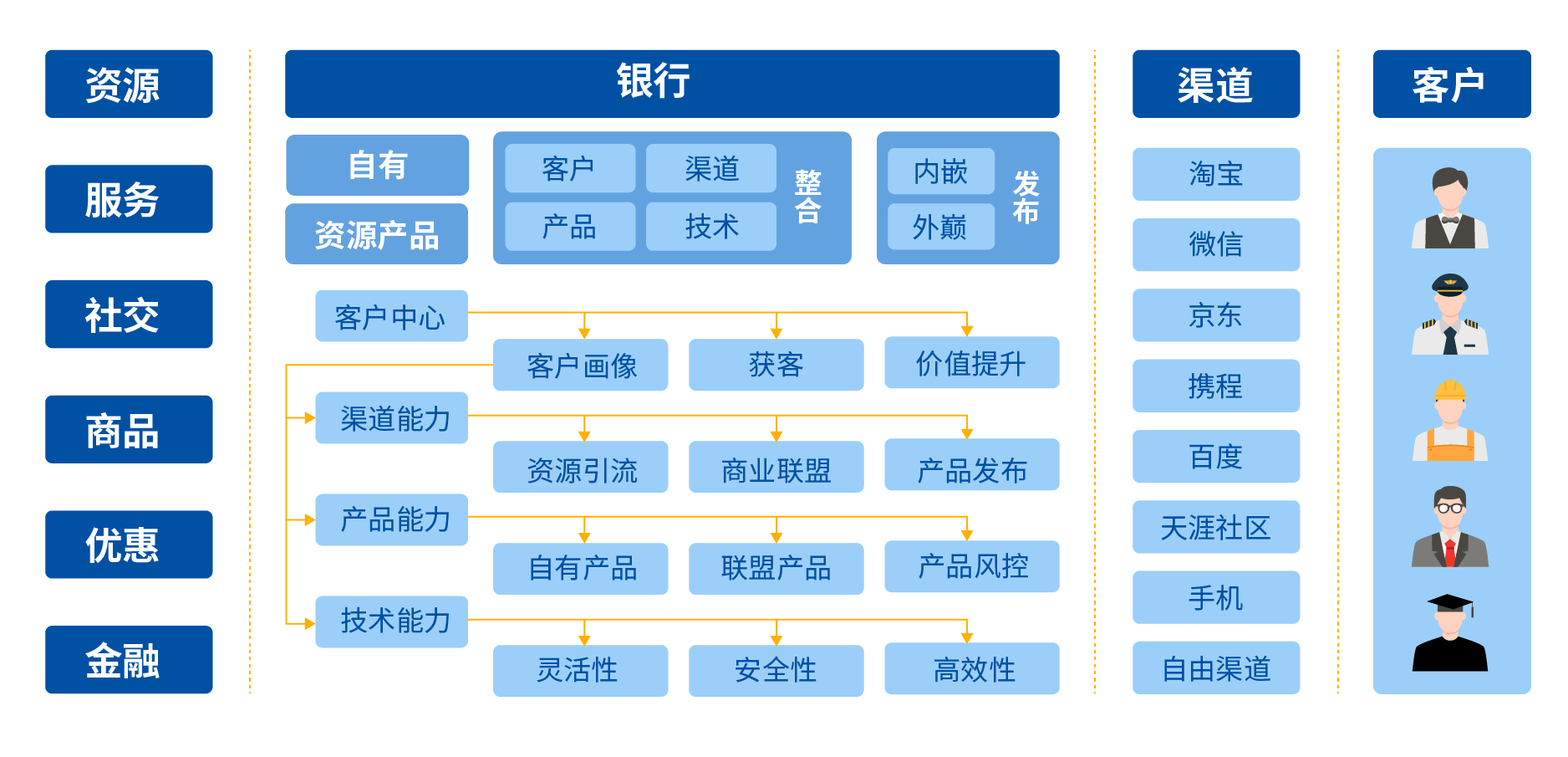 平臺通過對客戶體系、產(chǎn)品體系、渠道體系、營銷體系、風(fēng)控體系的層層解偶,解決了互聯(lián)網(wǎng)金融產(chǎn)品、客戶、渠道靈活多變的市場需求,可以配置化實現(xiàn)產(chǎn)品設(shè)計、客戶分析、渠道擴展、營銷及風(fēng)控策略定制。