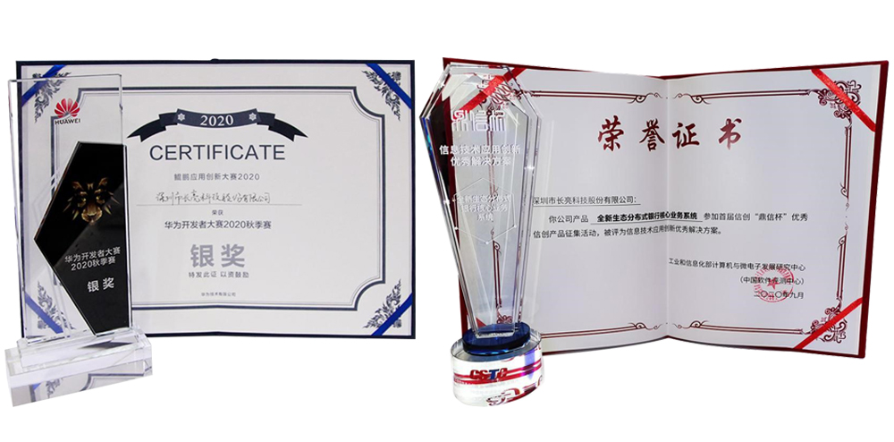 2020年,長亮科技憑借強大的金融科技創新力榮登IDC中國Fintech 50榜單、中國金融科技競爭力百強榜、福布斯中國最具創新力Top50榜單等多項權威榜單,首創的新一代“微服務+單元化”分布式核心系統也憑借著系統的先進性、強擴展性、可適配多技術平臺等優勢先后榮獲華為開發者大賽2020秋季賽銀獎,首屆“鼎信杯”的“信息技術應用創新優秀解決方案”等多項榮譽。