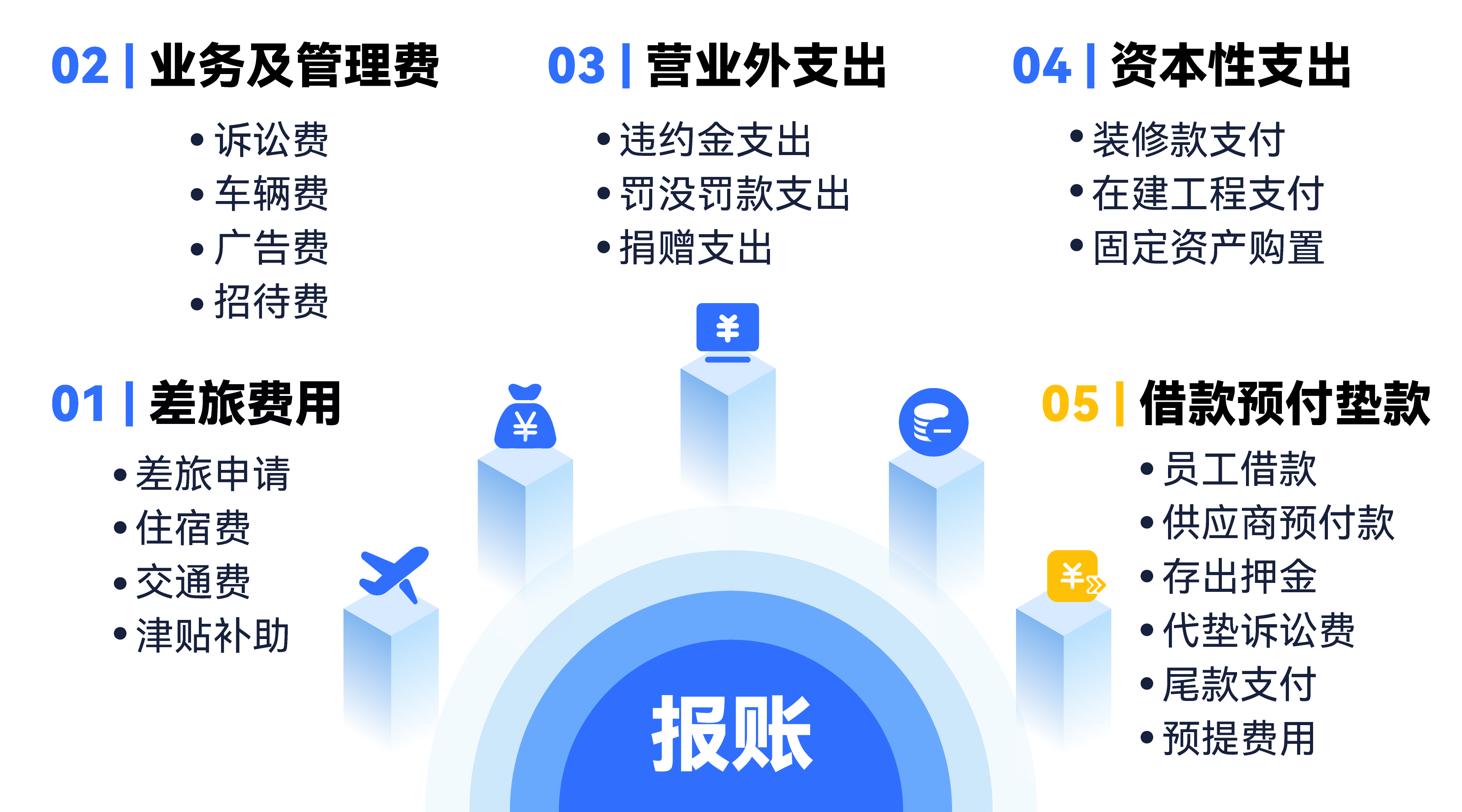 適用場景:面向全員性的費用報銷,如差旅費、招待費等。