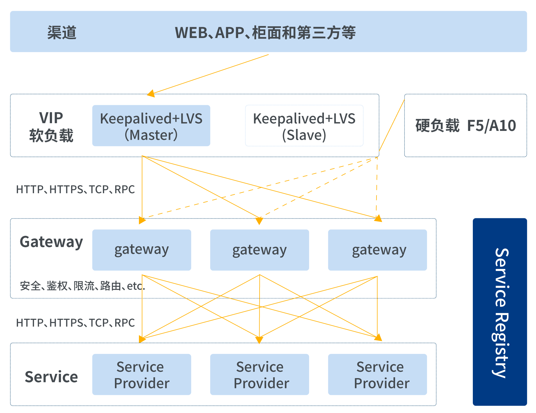客戶端通過負載均衡器訪問網關實例,負載均衡器可采用軟負載或硬負載方式,負載均衡器可使用MS架構避免單點故障。